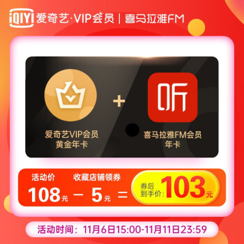 京东 爱奇艺旗舰店 明日15点开启联合会员狂促活动,京东联合会员直降至108元。收藏店铺可领5元券,叠加每日限量3元红包(0点领取)+每日可领3次的京享红包+京豆,实付低至100元: