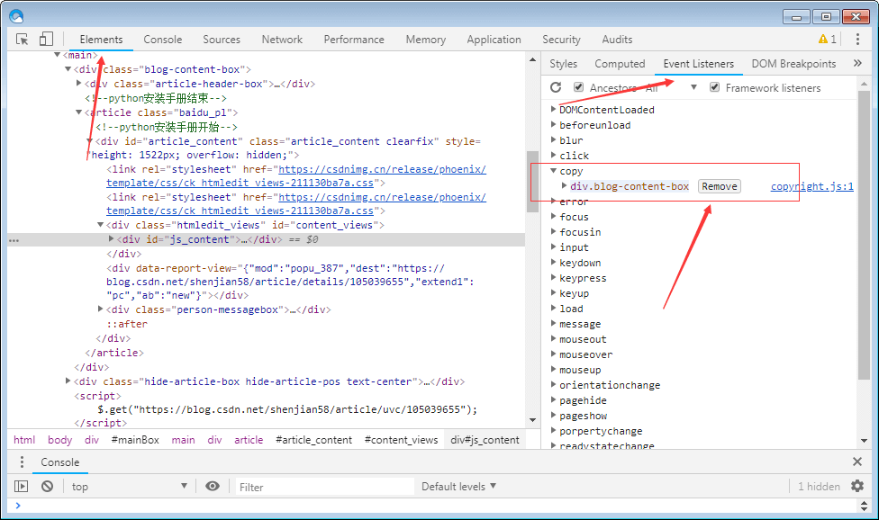 绝大多数的禁止网页复制功能,都是通过 JavaScript 使用了网页的 copy 事件,包括或者复制后有网址在内容末尾的情况,比如知乎、CSDN复制文字后就会自动在复制内容后面加上文章地址及版权信息,也都是这个原理。