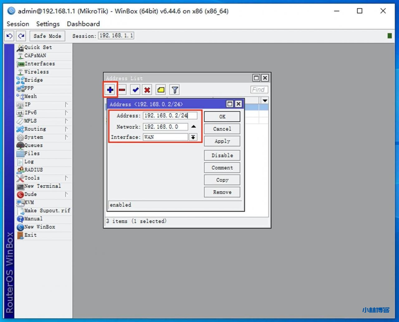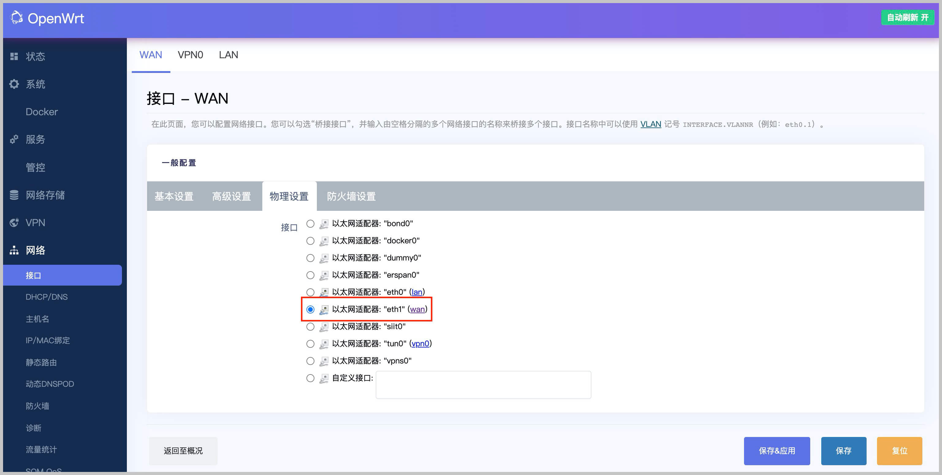 添加 WAN 口 IP 和 光猫同一网段,例如192.168.0.2.