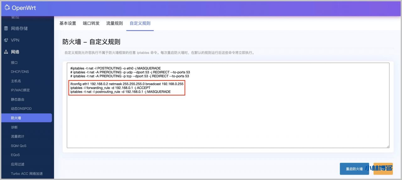 OpenWrt 的配置相对比较简单.仅需添加防火墙自定义规则即可.