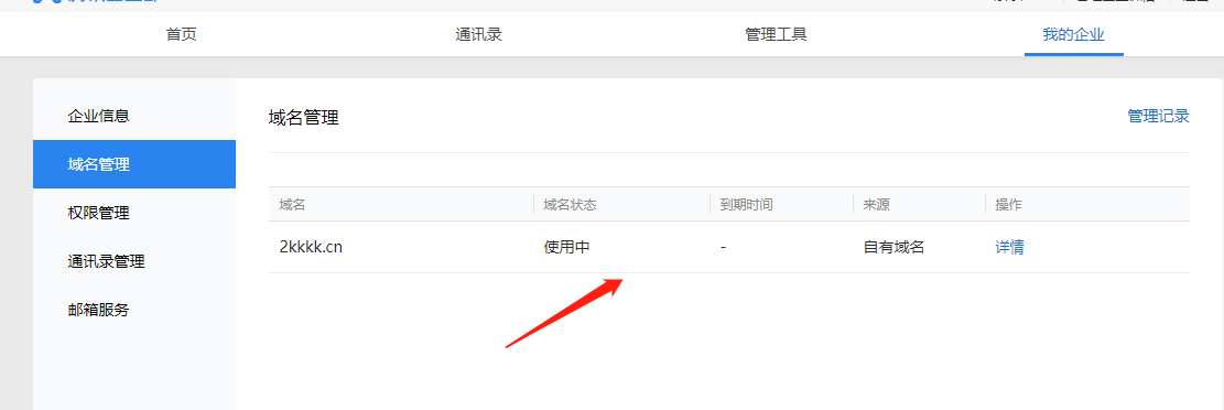 注册完之后进入管理后台,点击我的企业,域名管理: