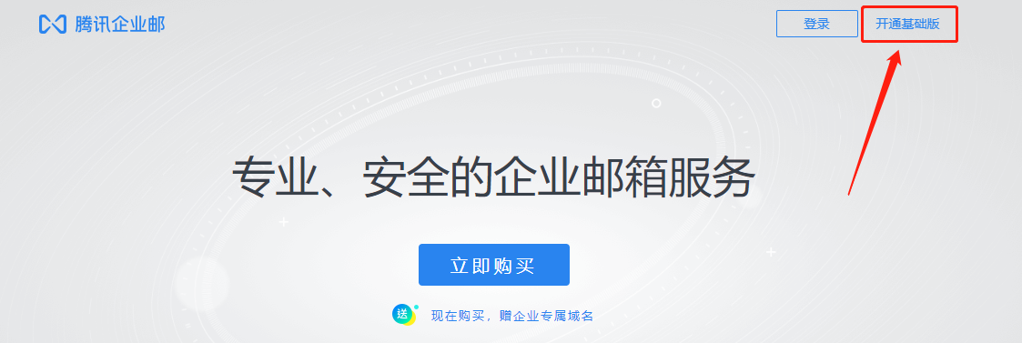 然后进入 腾讯企业邮 右上角,选择开通基础版,是免费的。