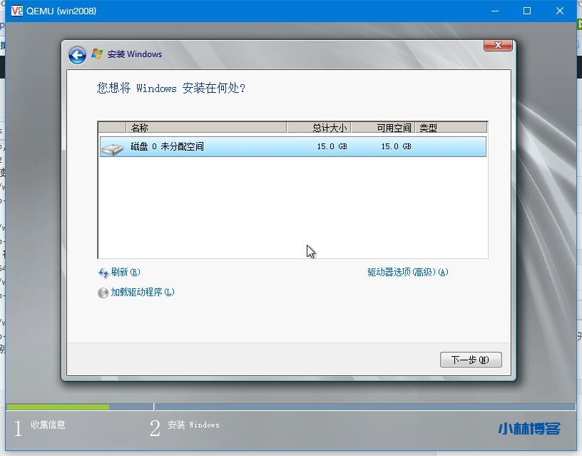 安装完毕后,我们可以看到已经识别到硬盘。现在可以自定分区然后安装系统了。