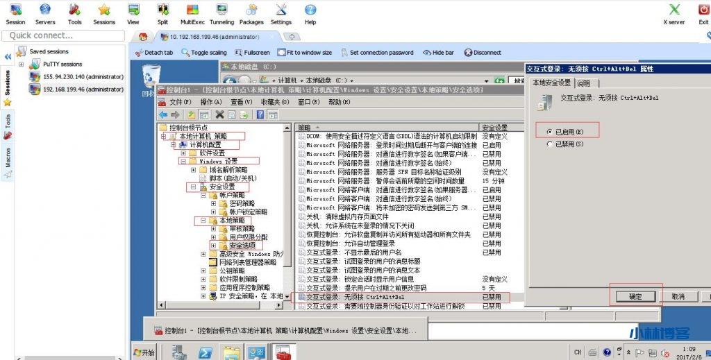 1.开启远程桌面,防火墙允许远程桌面连接。取消ctr+alt+del锁定。
