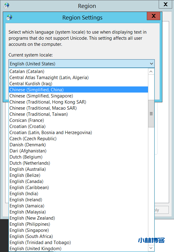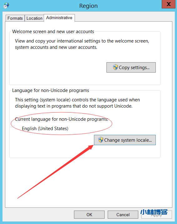 再点击“Region”窗口中的“Administrative”子窗口中的“Change system locale…”