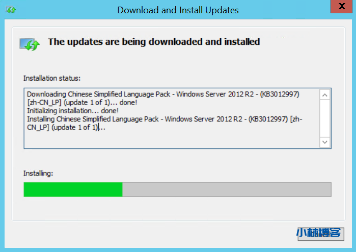 到这里基本的就已经配置好了,我们再点开语言包更新程序,发现依旧在安装,此时我们就可以去个厕所,喝杯咖啡之类的耐心等待了