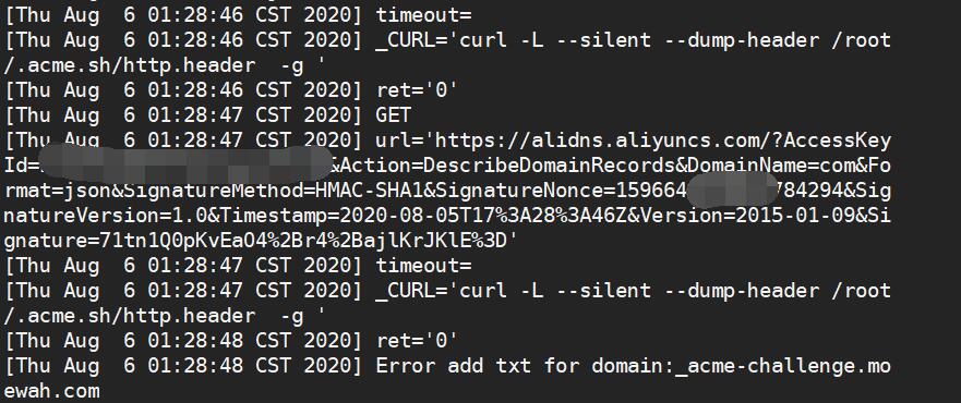 [Thu Aug 6 01:24:58 CST 2020] Error add txt for domain:_acme-challenge.moewah.com
