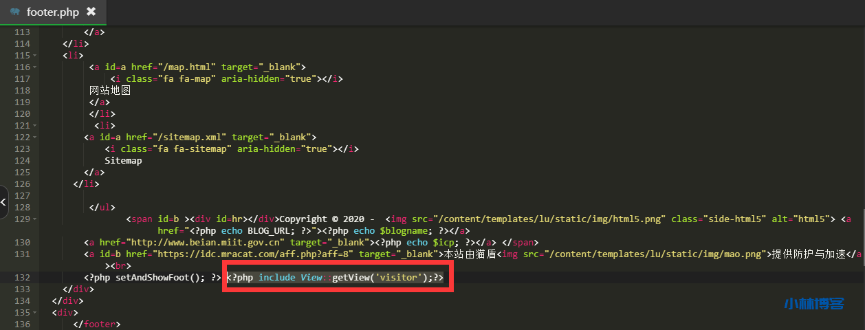 第三步:在当前模板"footer.php"文件中添加调用代码