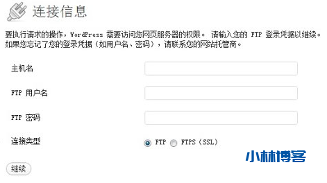 个别主机或VPS上WordPress更新,或者升级插件或者主题时会提示一个输入FTP信息的页面,然而有时候你明明输入是正确的信息,它还是提示不正确或者再再次的提示输入FTP信息。
