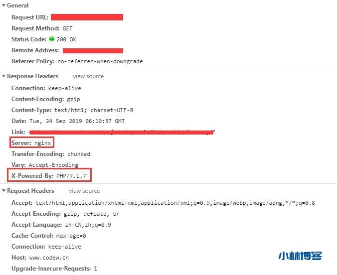Server和X-Powered-By是网站响应头信息其中的一个,出于安全的考虑,为了不让人看出来用的什么框架,一般会修改或删除掉这个信息。
