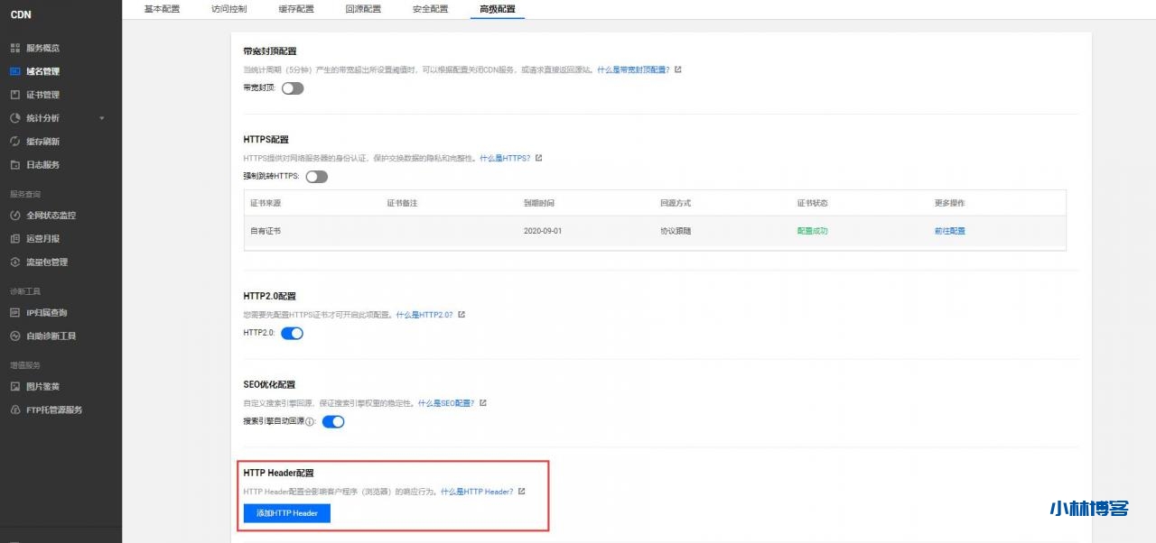 利用CDN自定义HTTP头配置,这里列举两家的CDN 腾讯云和百度云