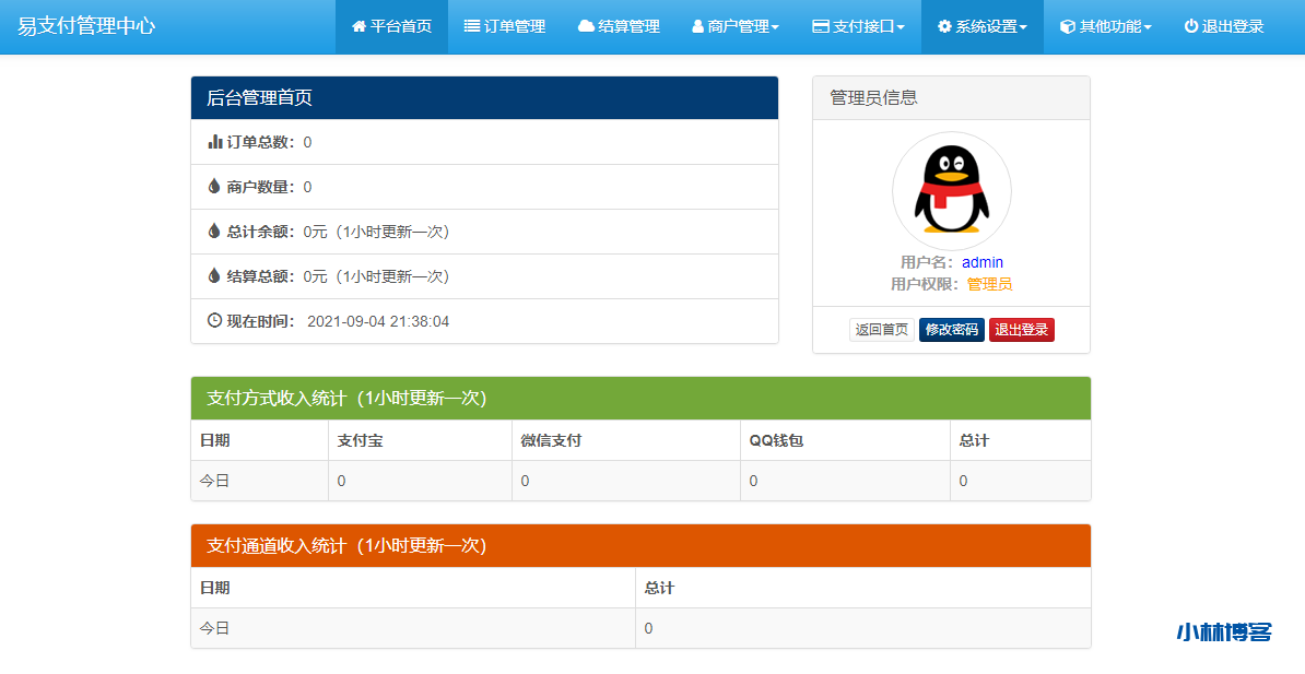 安装完成后默认 账号 admin 默认密码 123456
