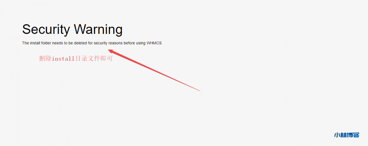 这个页面时WHMCS系统安全检测,删除安装目录文件即可,打开程序目录找到install目录,然后删除install目录即可!