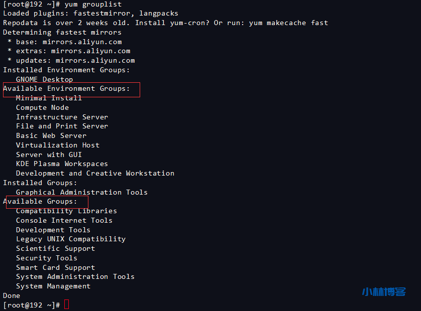 Available Groups 代表还没有安装的