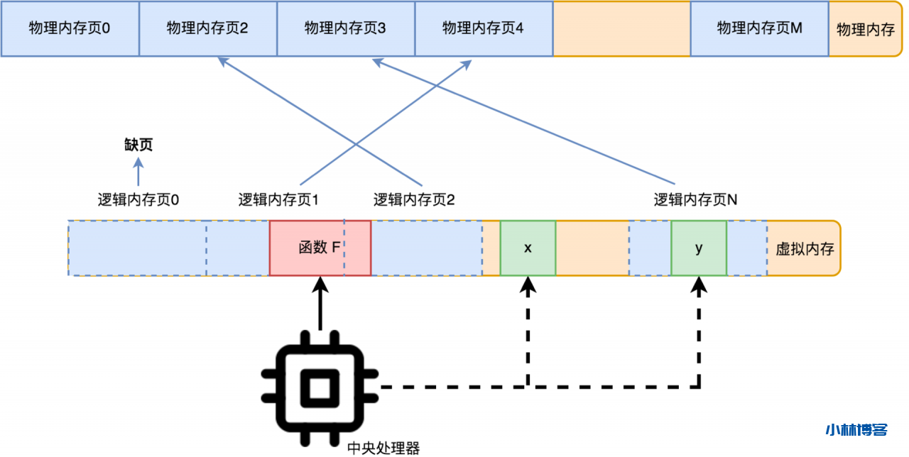 当然,也有可能某一个内存页对应的物理内存地址还不存在,这种情况叫缺页,没法读取数据,这时 CPU 就会发起一个缺页的中断请求。
