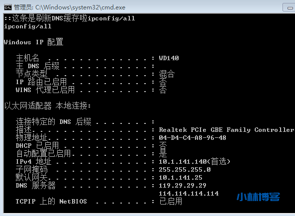 我们输入 ipconfig/all 看看DNS有没有被修改
