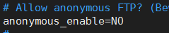 找到anonymous_enable这个配置项,默认是YES,修改成NO,表示不允许匿名用户登录