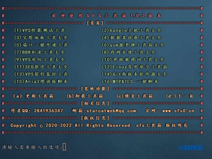 安装过工具箱后,直接在终端输入sfs回车执行即可快捷启动工具箱