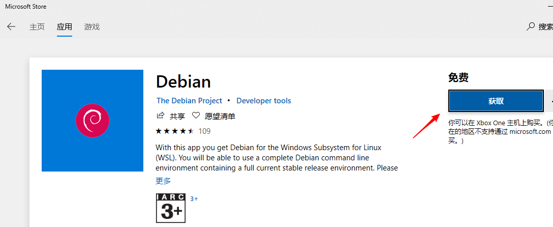 安装完毕后需要重启一次才会生效,重启后打开Windows应用商店,搜索“Debian”或者“Ubuntu”,然后进行安装。