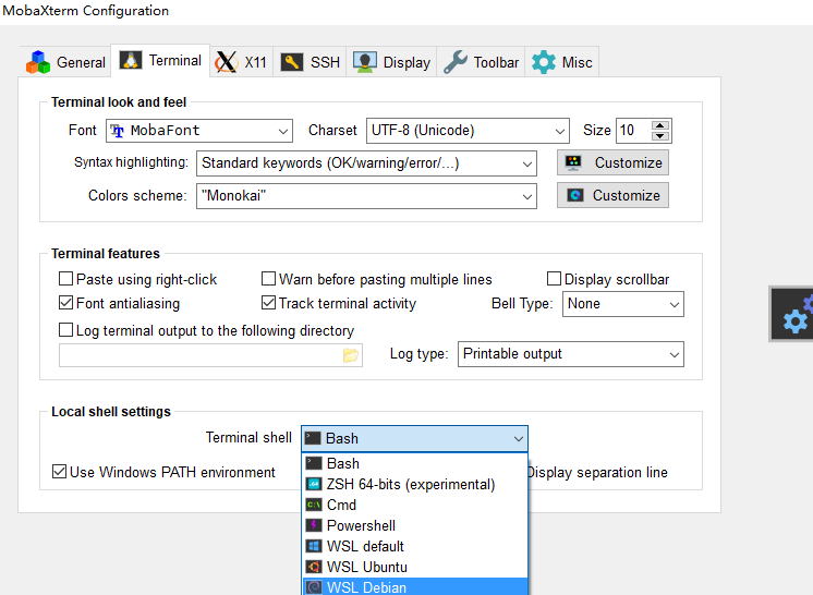 Windows 10子系统(WSL)可以原生运行Linux命令,但遗憾的是窗口不支持多标签运行,不过好在很多第三方软件已经支持设置WSL作为终端,比如MobaXterm 可以将终端设置为WSL,这样就可以在MobaXterm 环境下多标签使用WSL了。