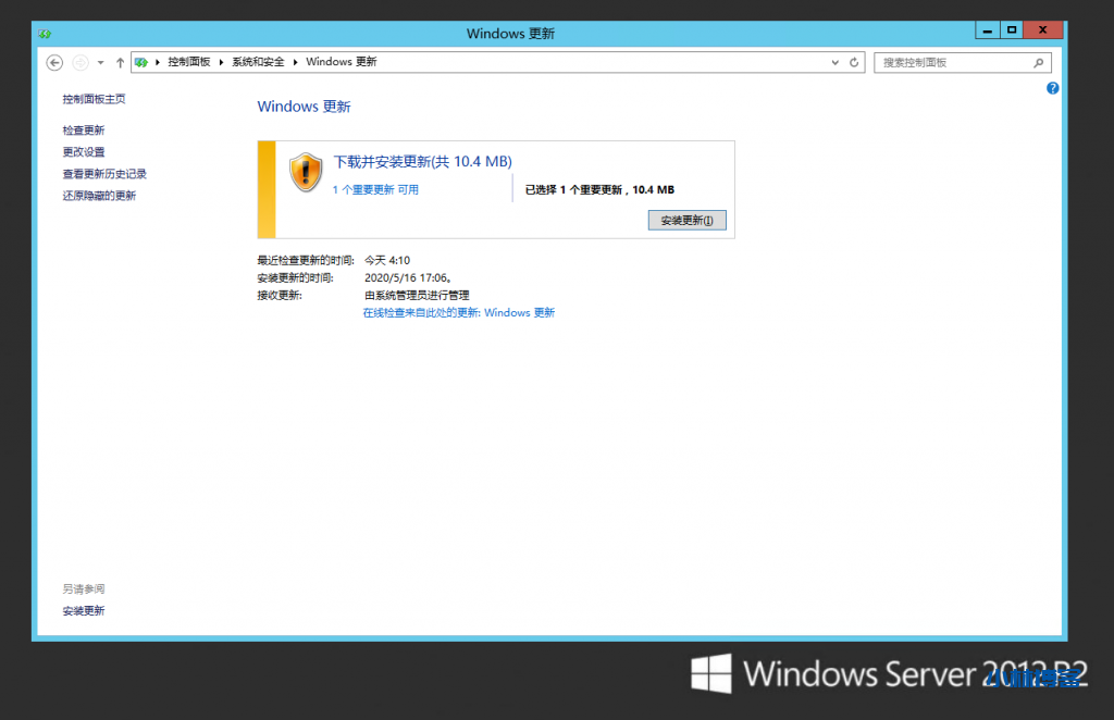 点一下安装更新,等待下载更新文件,自动完成更新,重启服务器,然后就可以成功连接服务器了