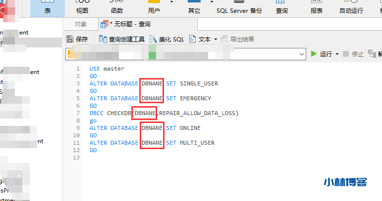 在使用Sql Server数据库的时候如果删除了数据库的log文件,数据库的状态将显示恢复挂起,并且无法对该数据库进行增删改查在内的任何操作,最简单的方法是直接关闭sql服务再启动,日志文件会自动恢复,但是有时候这个方法并不奏效,这时候我们需要把数据库改为单一模式,然后设置为紧急模式,重建数据库日志,然后就可以解决上述问题。