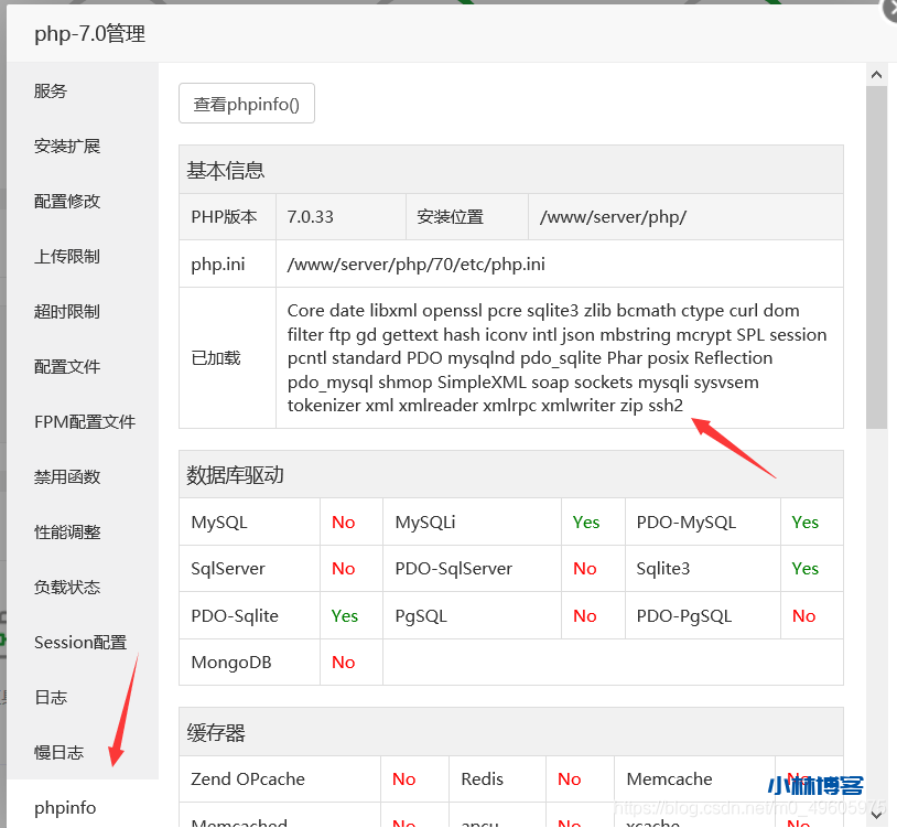4.查看[phpinfo]是否扩展安装成功或在控制台输入下方命令,成功后返回[ssh2],失败返回空白,如果报错查看编译路径是否正确。