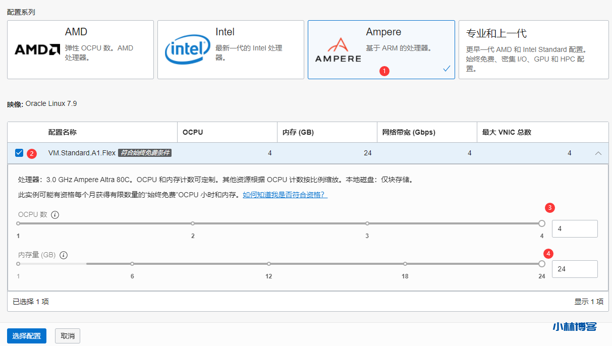 配置选择Ampere,OCPU 和 内存如图选择即可!