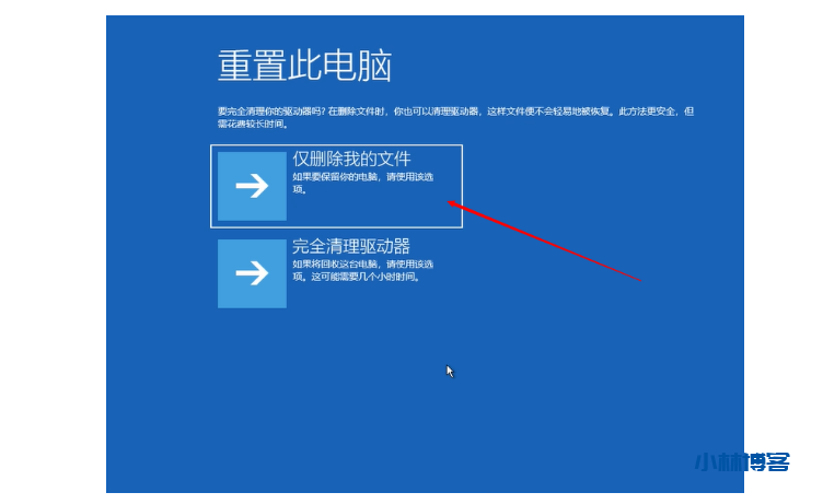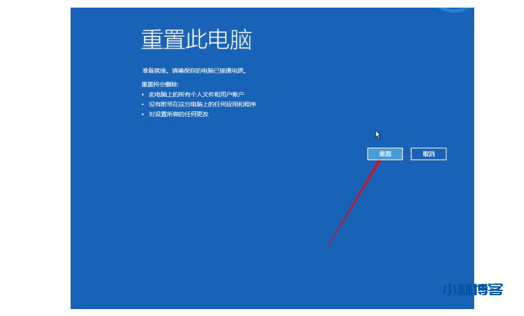 最后点击重置,即可开始重置电脑,解决蓝屏问题