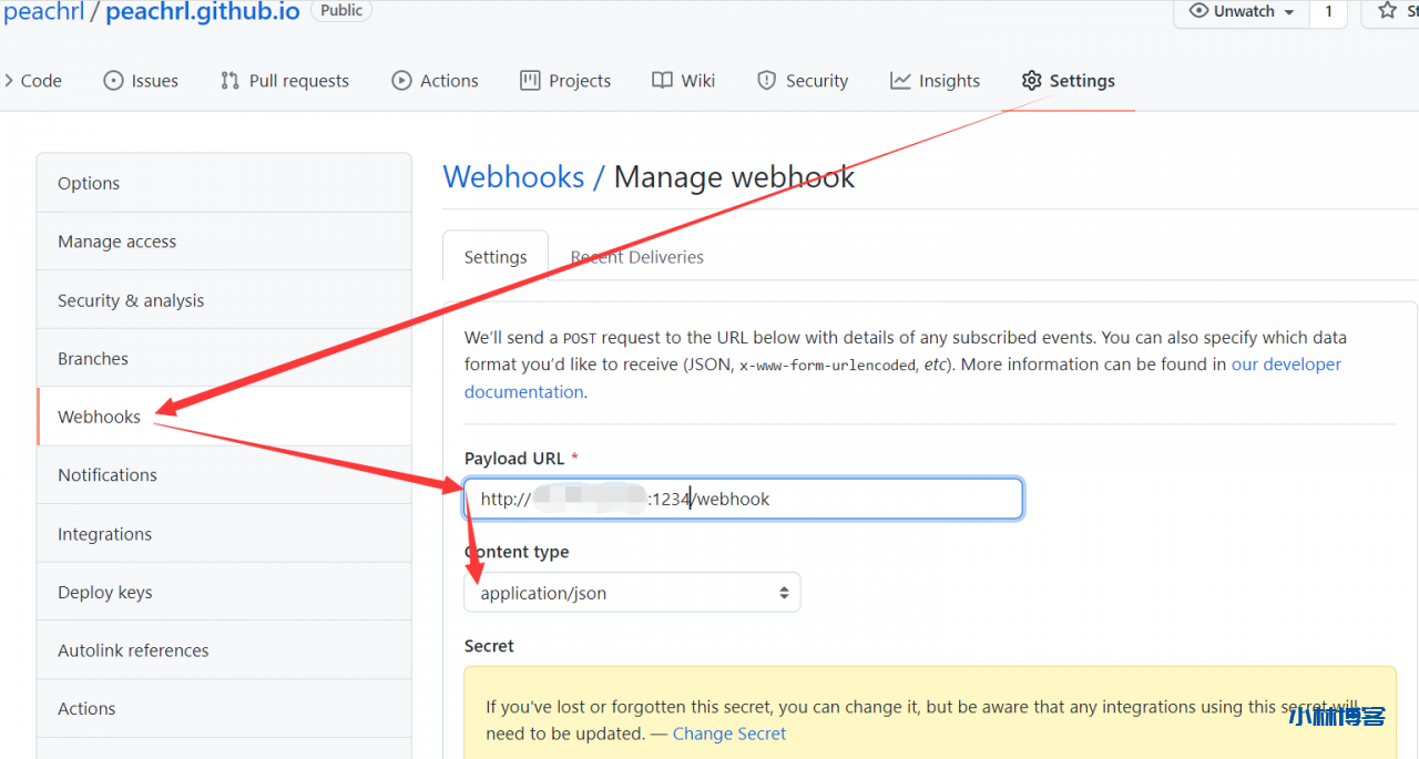 Secret是在webhook.js里 var handler = createHandler({ path: '/webhook', secret: '(设个密码)' }) 所设的密码。