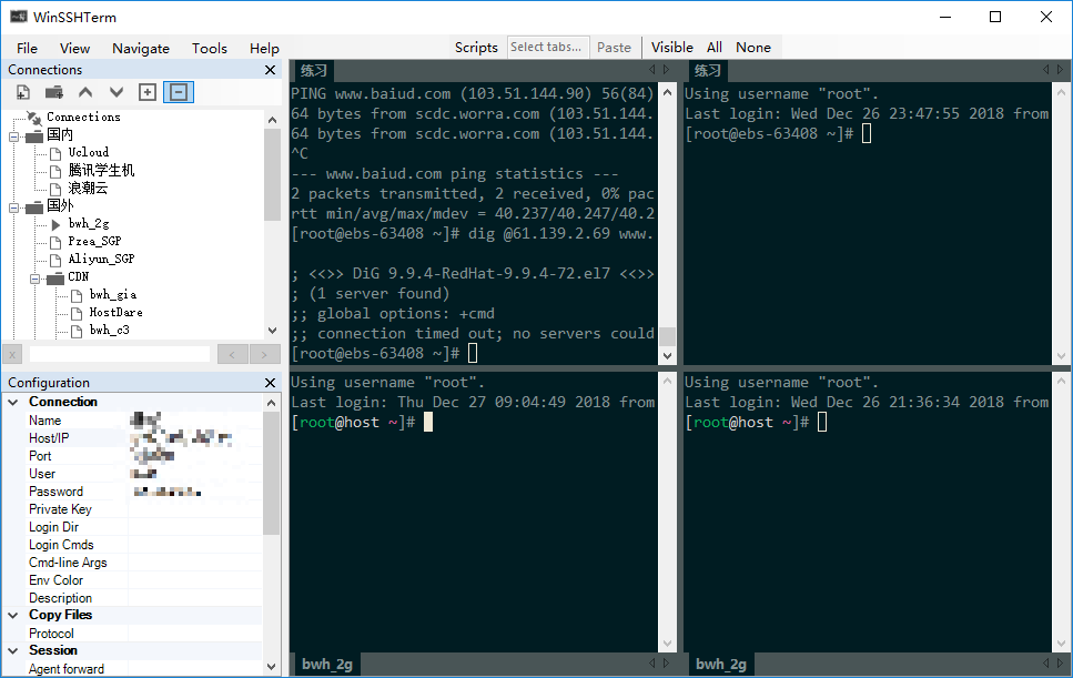 WinSSHTerm不仅支持多标签,还支持多窗口同时运行,看起来像下面的样子。
