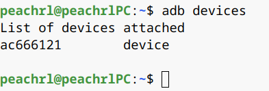 手机与电脑用数据线连接,开启USB调试。这时可以用adb devices查看到我们的手机设备: