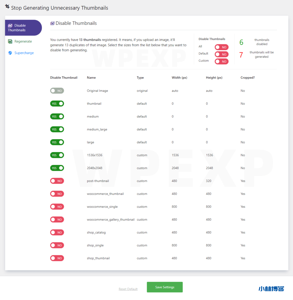 Stop Generating Unnecessary Thumbnails 插件以前叫 Stop Generating Image Sizes,它可以让你禁用掉一些图片尺寸,从而减少缩略图文件。 该插件兼容任何主题和其他插件,牛逼的是,它还兼容多站点模式。