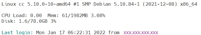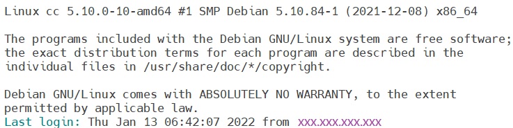 Linux通过SSH登录的时候,以Debian 11为例,会显示三种信息:内核版本、版权声明以及上次登录的IP地址(如下图)。内核版本可以让用户快速了解系统环境,上次登录的IP地址可以用来检查是否有非授权的SSH登录,但是版权信息对于日常使用并不起到足够的作用,反而还占用显示输出的空间。