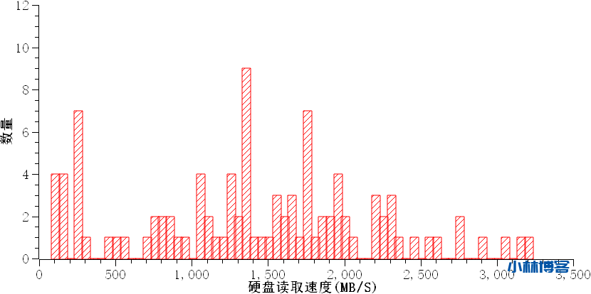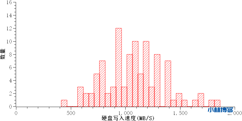 写入速度呈现明显高斯分布趋势,最低写入与最低读取速度明显不匹配。