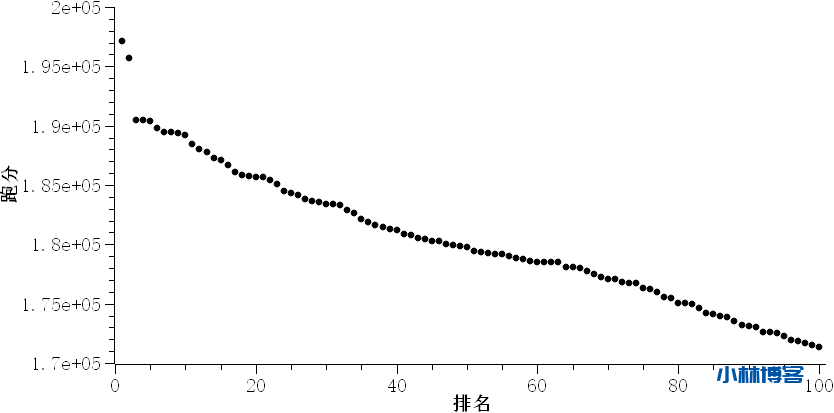 第一名使用了2块12核24线程的E5-2696 v2配合148GB内存(存疑),在CentOS Linux 7.6/kvm下跑到了197119分。第二名使用了1块20核40线程的E5-2673 v4配合160GB(存疑),在CentOS Linux 7.5/hyperv下跑到了195670分(疑似Azure的服务器)。第一、二名大幅领先其他服务器,跑分呈明显下降趋势。最后一名得分171337分。