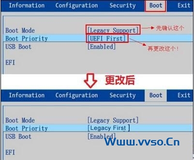 2、以下面的BIOS为例,在Boot将Boot Mode改为Legacy Support,Boot Priority改为Legacy First,按F10保存退出。