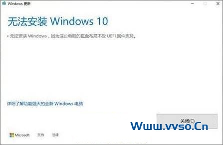 Win10系统新增UEFI检测机制,在BIOS开启了UEFI时,如果硬盘分区表格式不是GPT,则会提示无法安装win10,也就是说UEFI+GPT或Legacy+MBR才能安装win10。