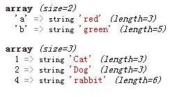 $arr1=array("a"=>"red","b"=>"green","c"=>"red");