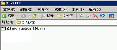 2、配置客户端,这里我使用的是win2003的本地服务器,因此客户端选择 lanproxy-client-windows-386-20190523.tar.gz ,并将得到的解压文件client_windows_386.exe放到D盘的RATS文件夹里,如下图。