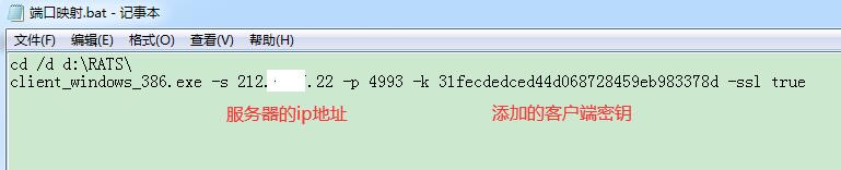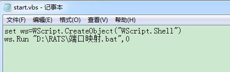 同时在RATS目录下新建 端口映射.bat 命令文件,记事本打开编辑的命令代码如下: