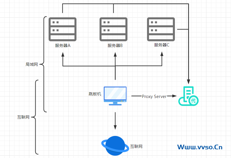 跳板机可以访问公网,也能访问局域网内的服务器。