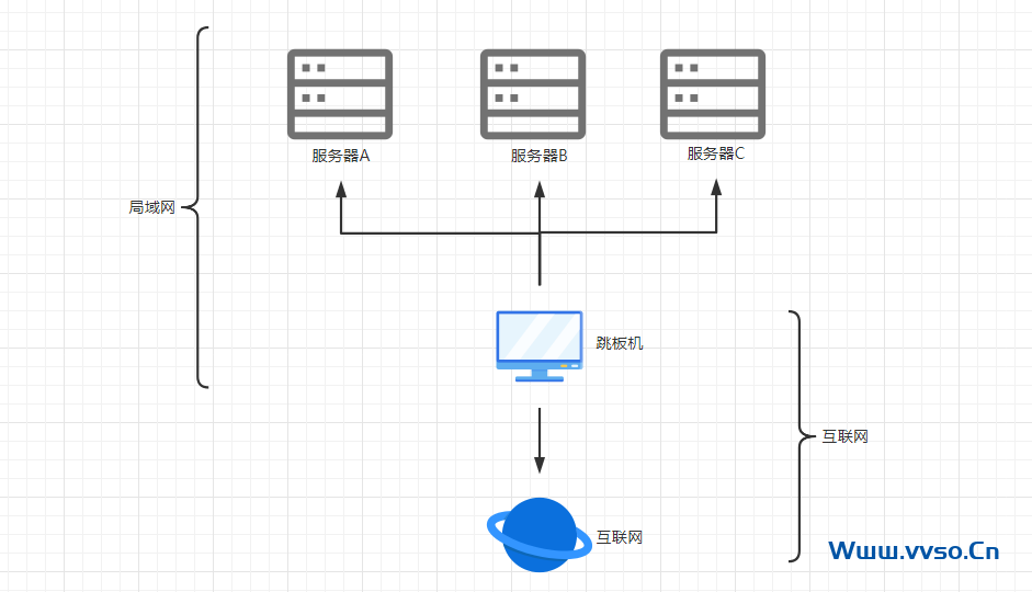 内网的服务器均不连公网(互联网)。我们需要访问服务器一般会配置一台跳板机。