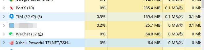XShell 5 启动1个SSH,PortX启动1个SSH。前者仅6MB,后者285MB