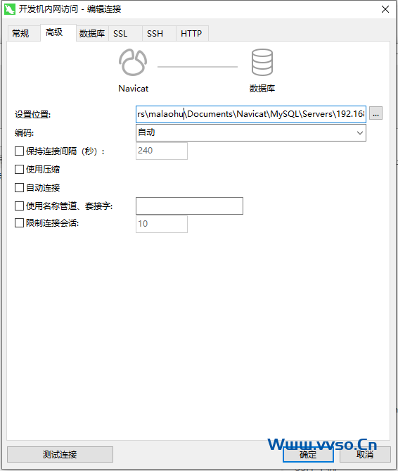 1)编辑数据库链接 -> 高级 -> 设置位置