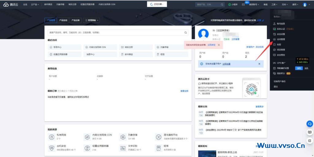 3.SecretId SecretKey获取 进入我们腾讯云控制台点击访问管理如下图
