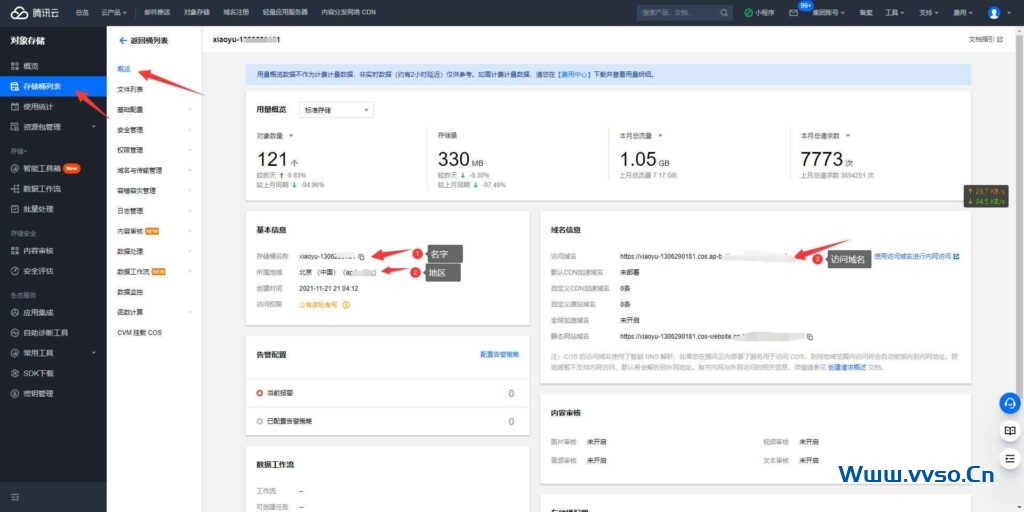 4.获取储存桶信息的地方我就不一样一样讲解了 我就直接截图给大家标记出来了