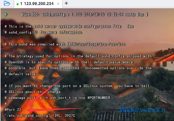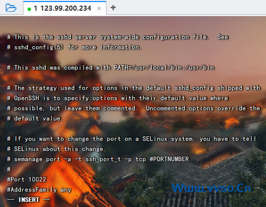 按 i 键 改为编辑模式,如下图 这边测试修改为 10022 然后把#注释删掉