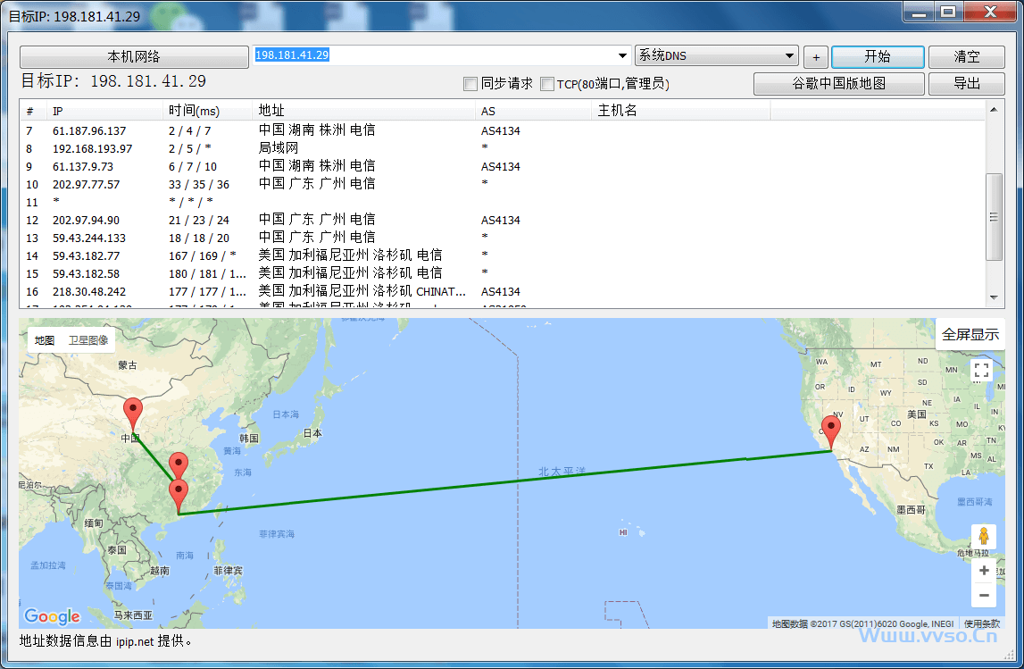 1、使用工具来测试。关于服务器的路由追踪测试,我们可以使用工具besttrace.exe能简单直观的看到经过的每个节点,并且还有直观的地图展现出来。