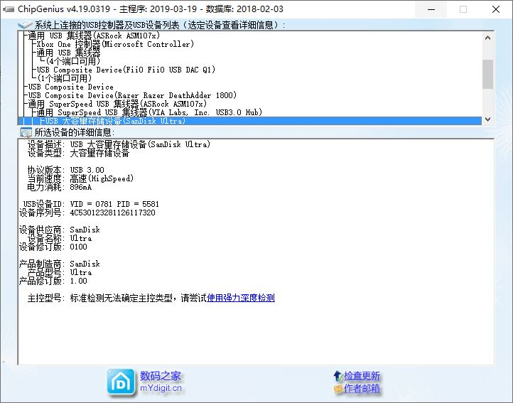 首先插上 U 盘,打开 ChipGenius,查看对应的 VID 和 PID,像图上我的 U 盘 VID 为 0781,PID 为 5581,记录下来。硬盘不需要此步骤,可以直接看下方写入引导文件的部分。